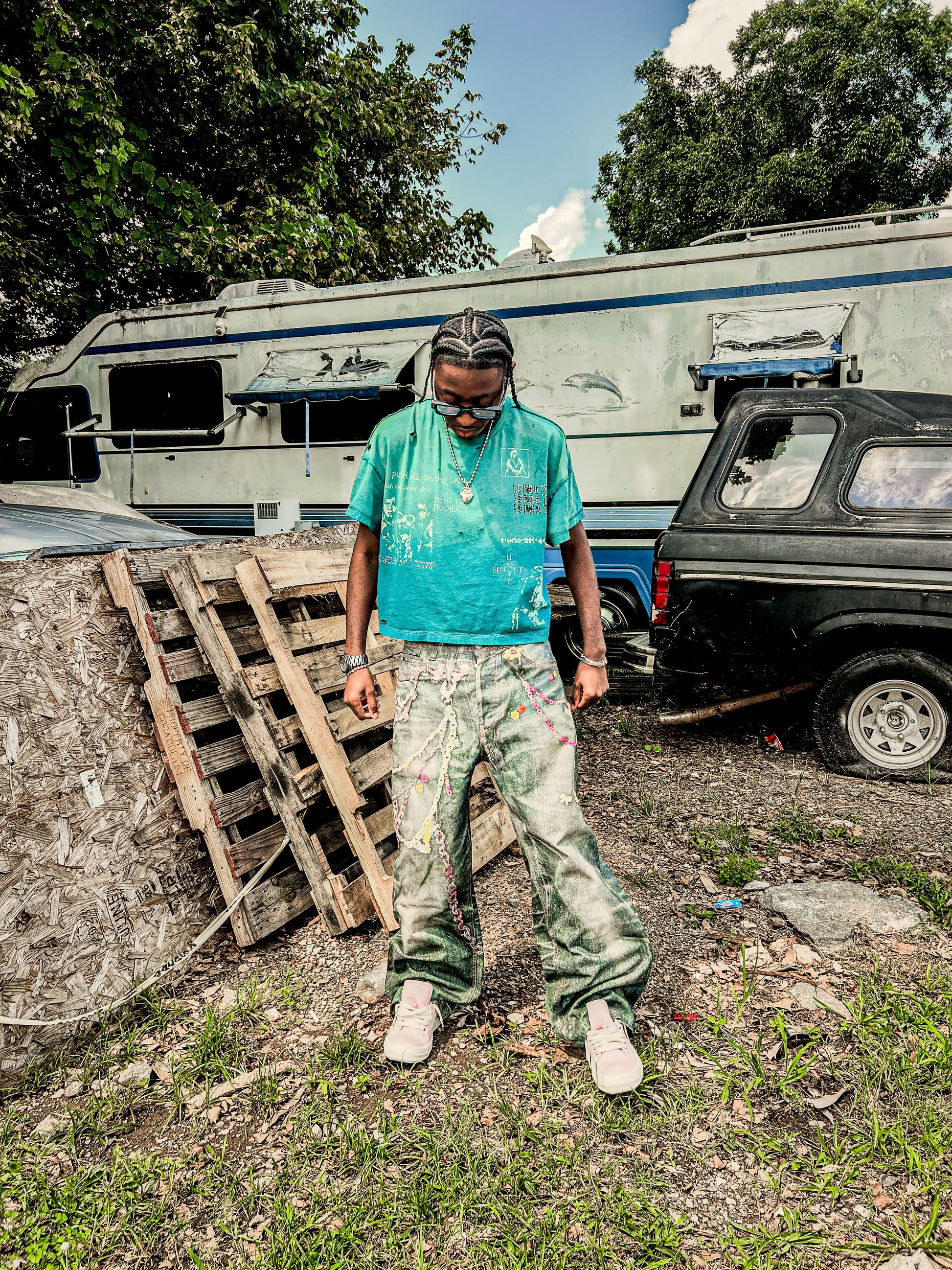 - turquoise color with sun fade